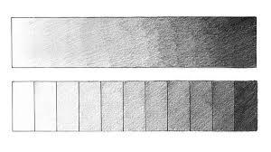 Ahora observa la imagen de esta lección. Se trata en un ejercicio de degradado con lápiz. Con un lápiz puedes lograr la apariencia de las sombras reales en el dibujo. Intenta replicar esta escala de grises en tu libreta