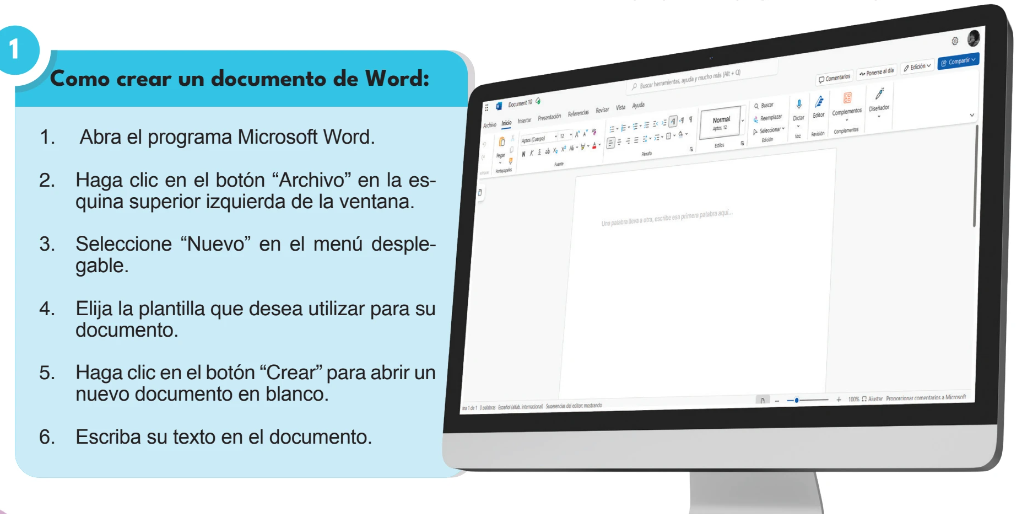 A continuación, se te da paso a paso como crear un documento nuevo en Word: