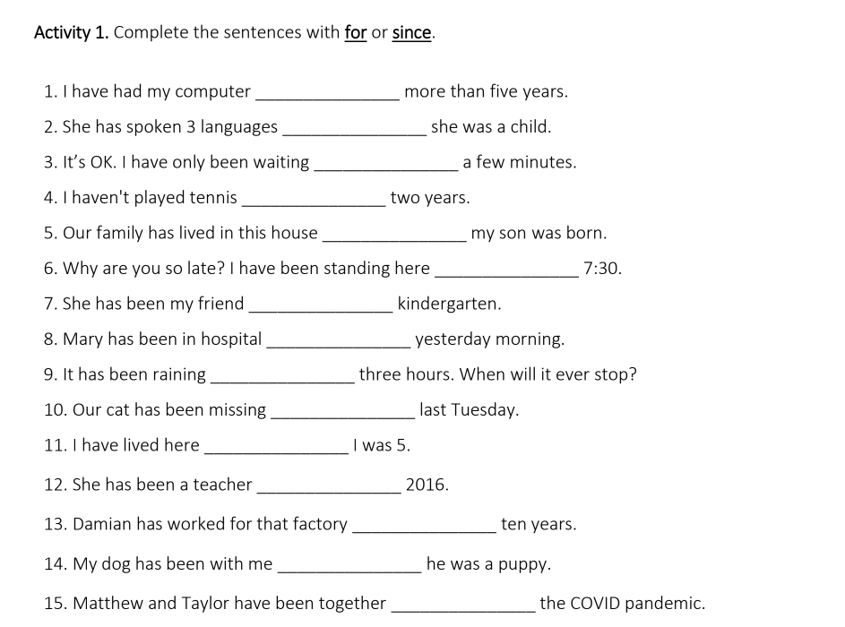 2. For and Since