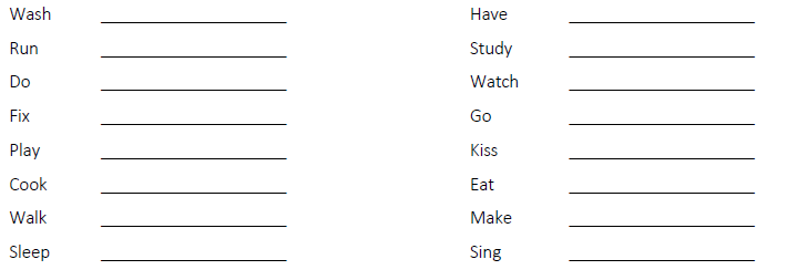 Actividad 1. En tu cuaderno, agrega “s”, “es” or “ies” a los verbos de las siguientes listas.