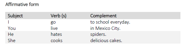2. Si el sujeto es he, she o it, es necesario agregar una “S” a los verbos en su forma positiva.