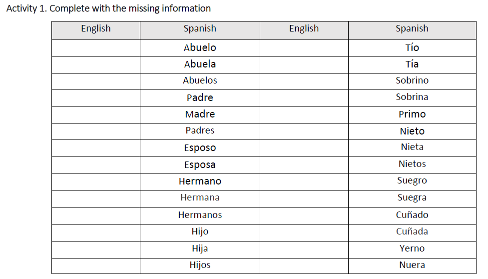 Actividad 1. Reproduce el audio e identifica los miembros de la familia en la imagen de referencia.