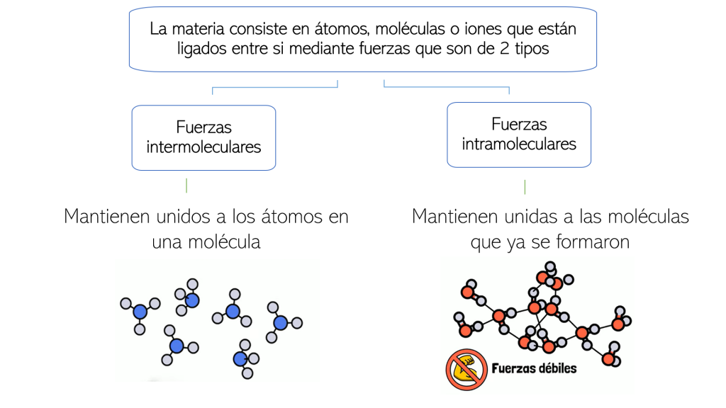 Sustancias con fuerzas débiles → gases. Sustancias con fuerzas fuertes → líquidos o sólidos.